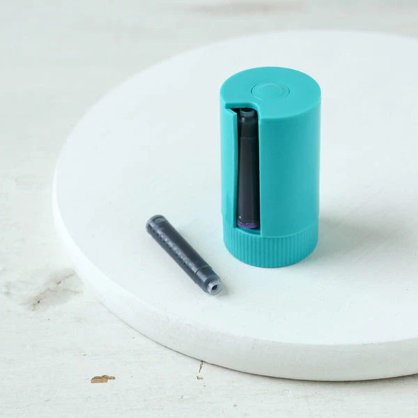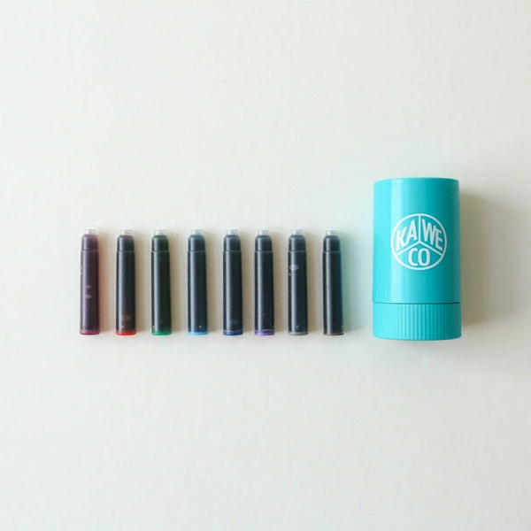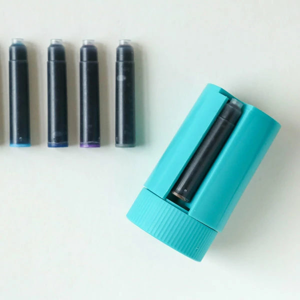 Kaweco Twist & Test cartridge dispenser with eight different Kaweco ink colours This handy cartridge dispenser contains eight ink cartridges: Ruby Red, Palm Green, Paradise Blue, Sunrise Orange, Midnight Blue, Summer Purple, Caramel Brown and Smoky Grey. Once it is empty you can refill the cartridge dispenser with your favourite ink colours. made from: Plastic