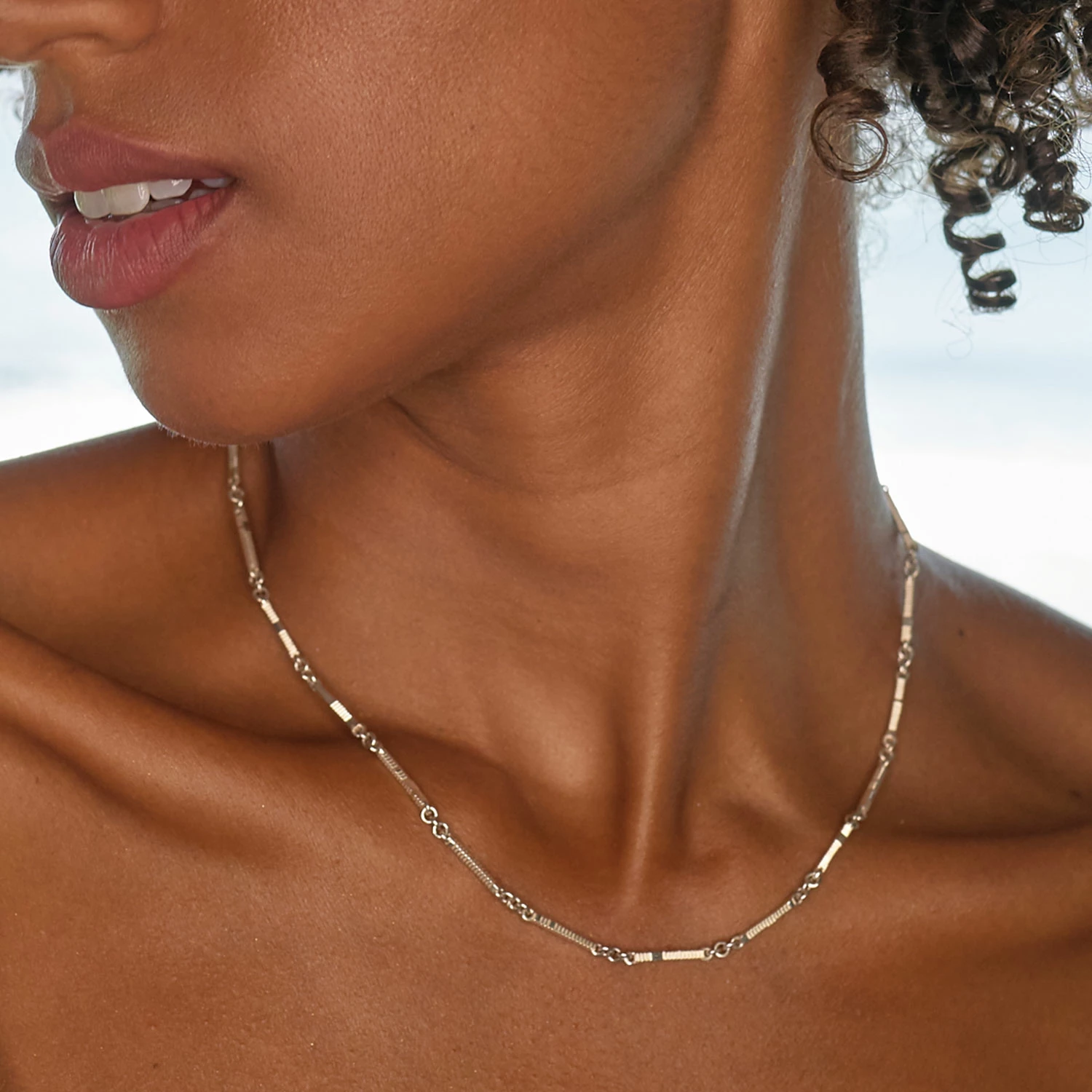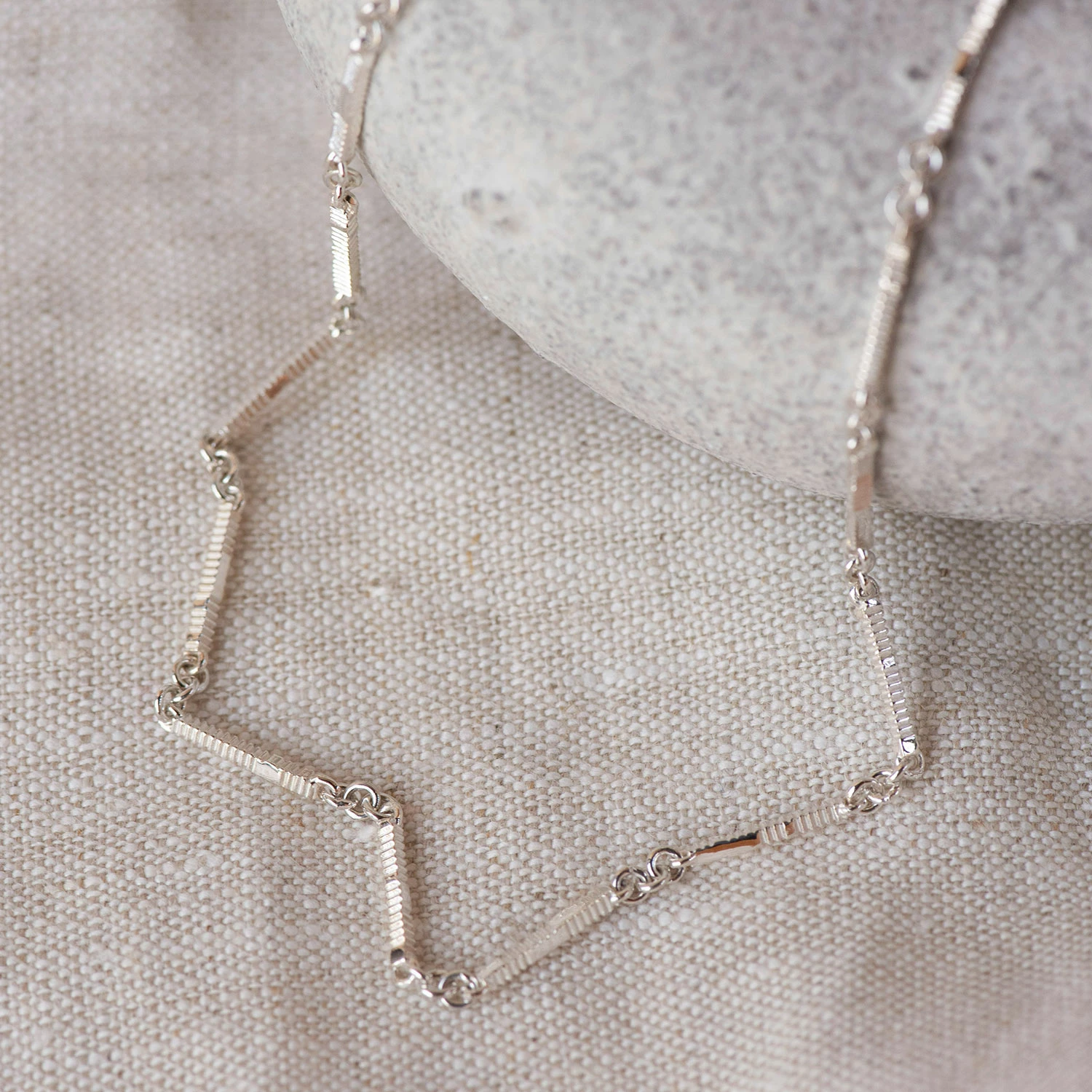 Slightly 70s, slightly architectural, this hand crafted chain is made to layer. Each individual piece is joined with jump rings, giving it a fluid and fun movement.