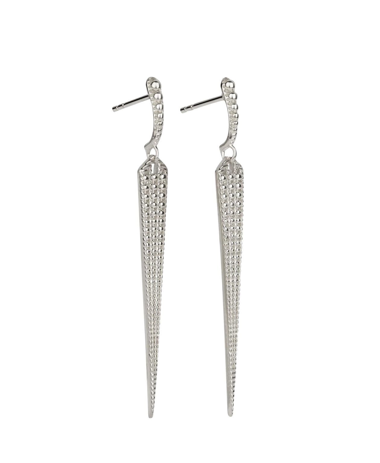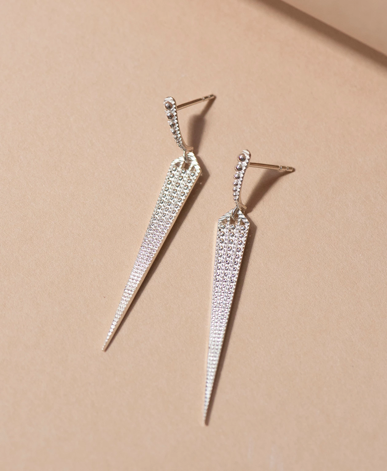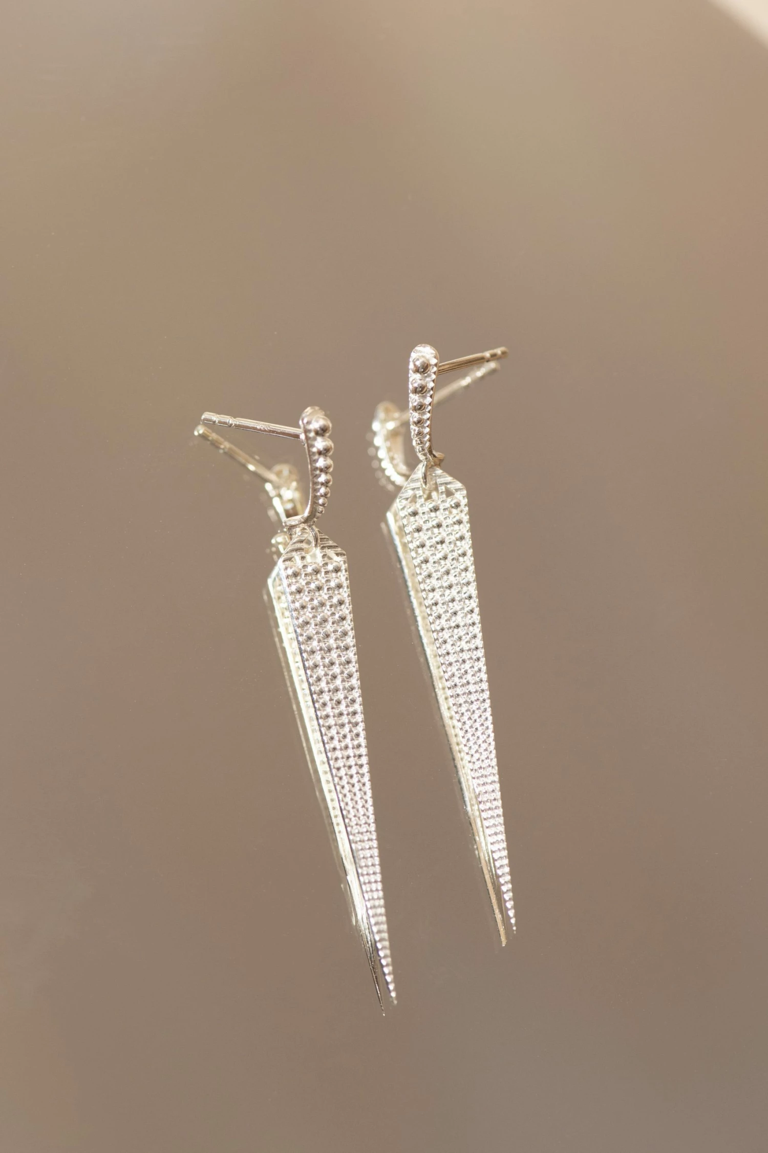 These dramatic graphic earrings are light and comfortable, they feature a beautiful texture that is reminiscent of corals. They celebrate Coralia, a dancing mermaid in a 19th century ballet routine, with the way they move and delicately swing on your ear. Metal: Consciously crafted in high quality 100% recycled 925 Sterling Silver.