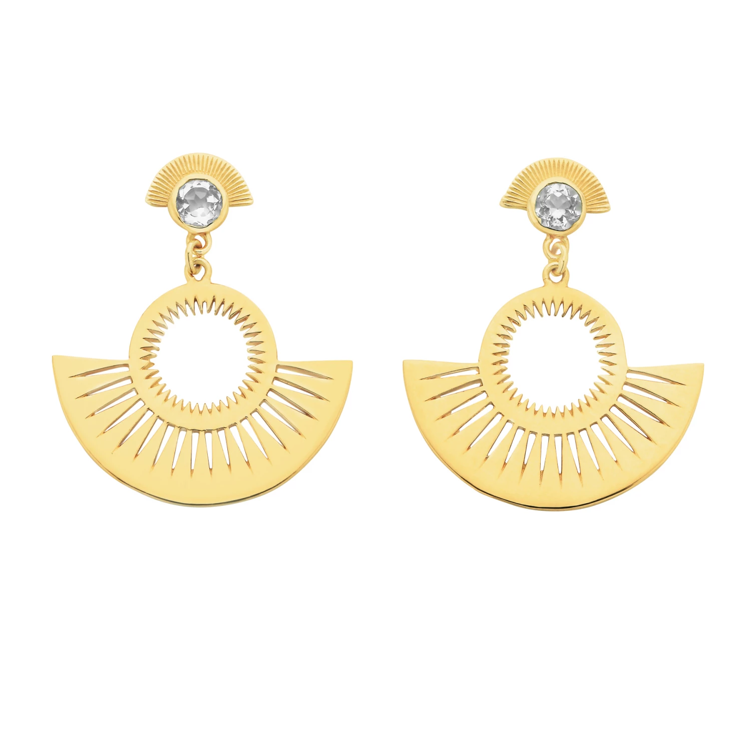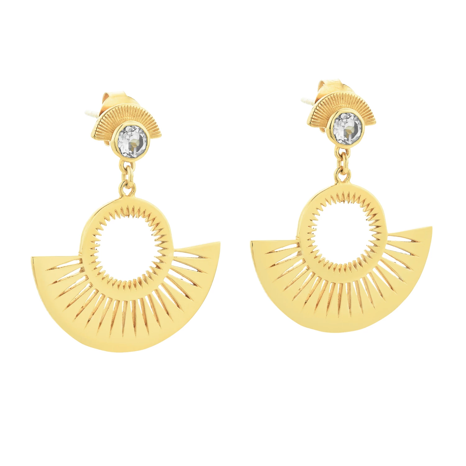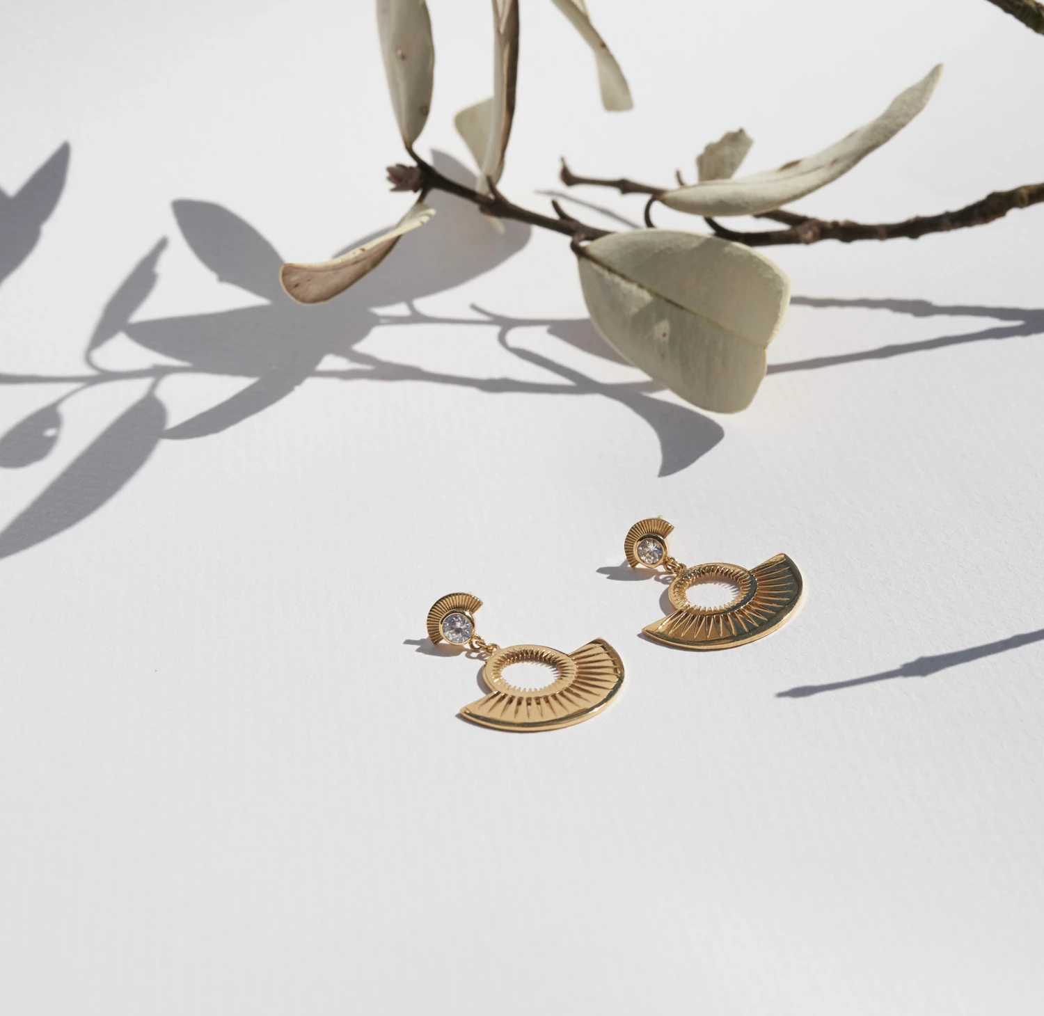 The Pocket Full of Sunshine Earrings create the shapes made by the Sun as it sits over the sea, and the reflections of light cast over the water.