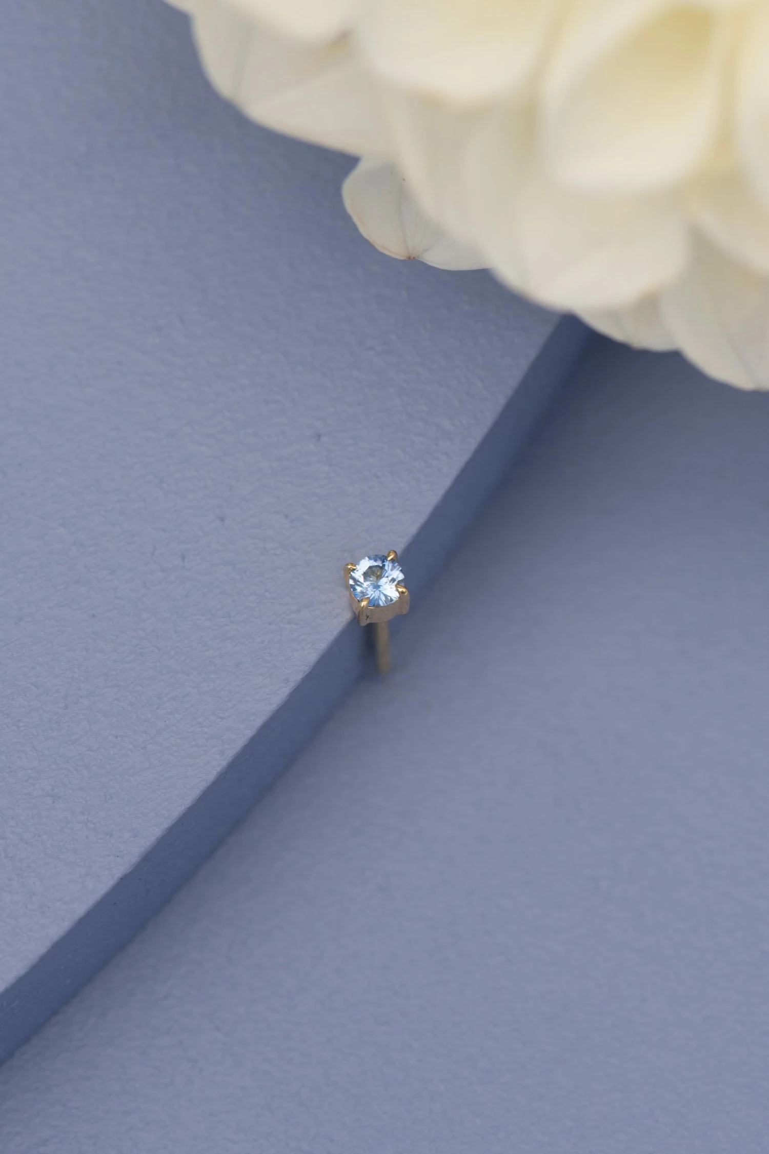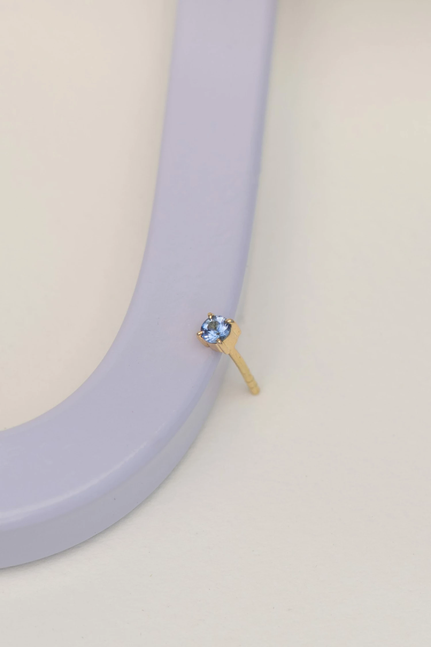Stone: 3mm natural ceylon blue sapphire, set with 4 tear drop claws.