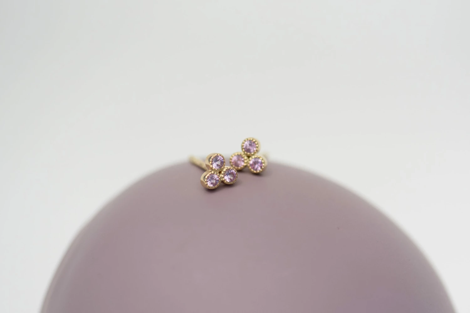 Stone: Three natural 2mm, AA Grade pink sapphires.